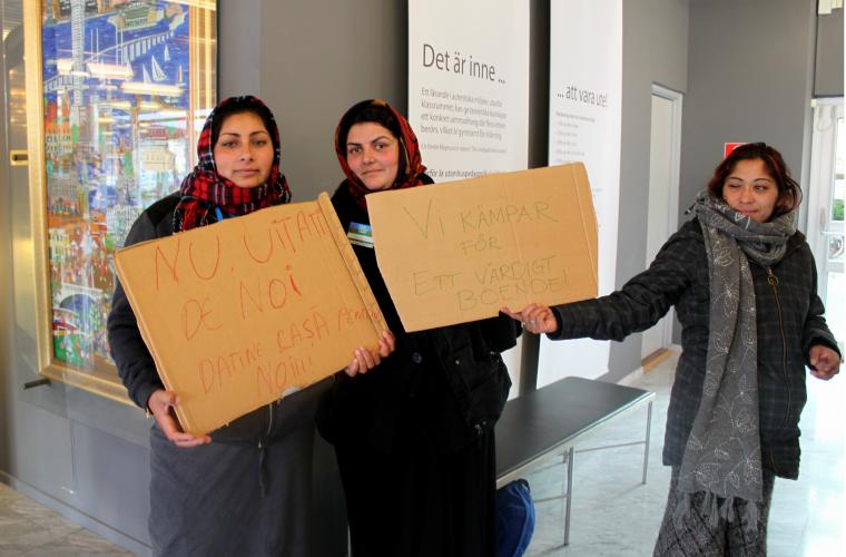 Aktivister som protesterat utanför Malmö stadshus sedan rivningen av Sorgenfrilägret gick i dag in i receptionen. Genom en sittaktion framfördes kravet att få träffa Katrin Stjernfeldt Jammeh (S).