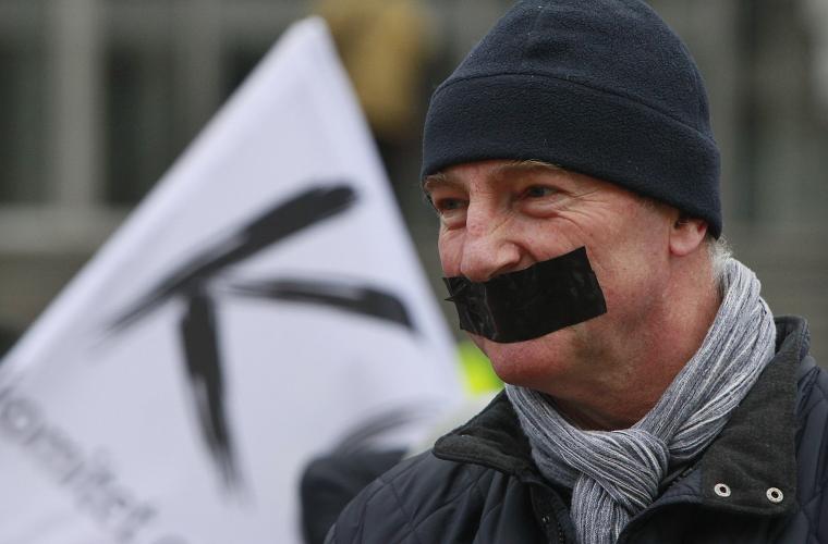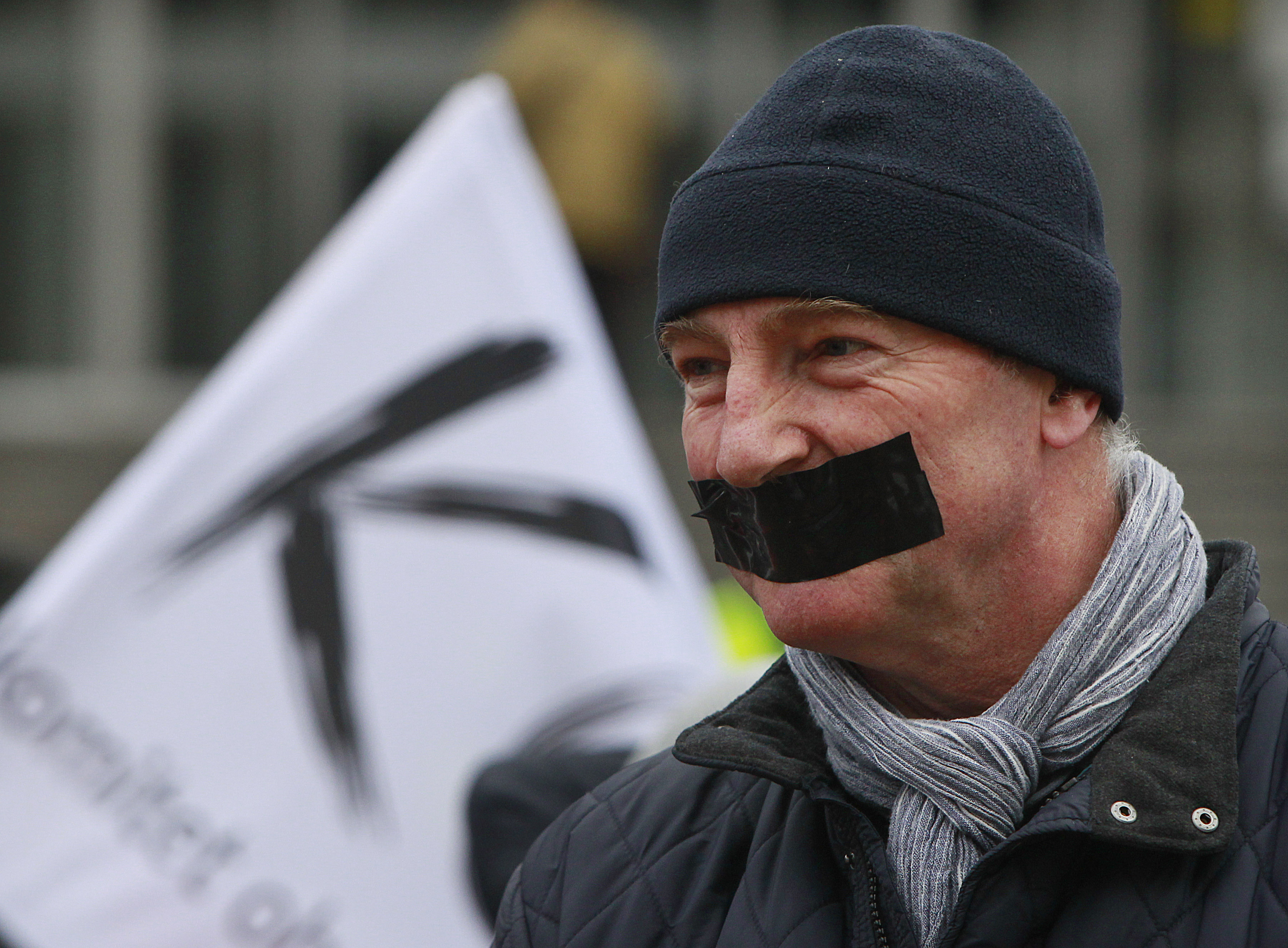 I Spanien bemöttes de massiva protesterna 2011 mot nedskärningar och korruption med munkavlelagarna, en serie absurda lagar som beskärde demonstrationsfriheten och yttrandefriheten dramatiskt. Till exempel så hotar miljonböter för den som arrangerar eller deltar i en olovlig demonstration utanför parlamentet. Det är också olagligt att uppmana till spontana protester på sociala medier, att inte bära id-handlingar och att visa ”bristande respekt” för polisen. Här har det inte ens varit tal om att Bryssel ska kritisera Spanien eller vidta några åtgärder – lagen kom ju till just för att skydda den nyliberala politik som ordinerats av de så kallade institutionerna.