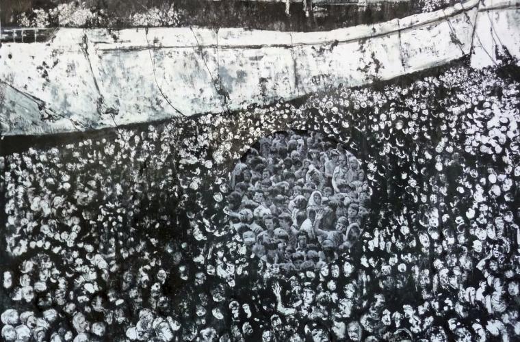 Fotografi är det ovanligt lite av på årets salong. Någon kontroversiell bomb bjuds det inte heller på, och den politiska samtiden känns frånvarande. Det är en ganska problemfri och vacker värld som tecknas. Det finns några undantag: en naken man i höga klackar, ett maskerat ansikte, hopklämda bröst, övervuxna tåg i Tjernobyl. Och den mest drabbande samtidskommentaren, Berit Fraderas tuschteckningar, som ger plats åt flyktingströmmen.