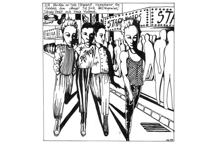 Mare Kandre tecknade alltså Punkaren 1979 och här finns talang i överflöd. I London stannade hon bara en termin, efter att ha tröttnat på skolans statiska uppgifter och inrutade rutiner.
