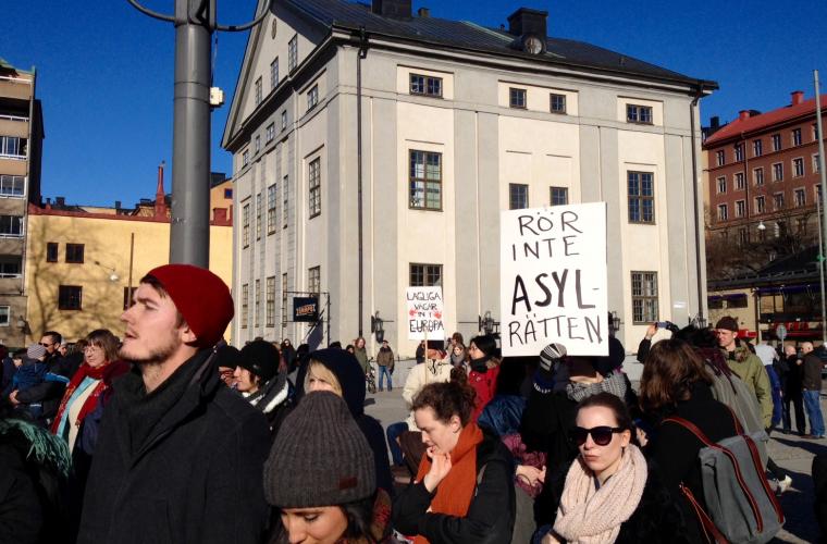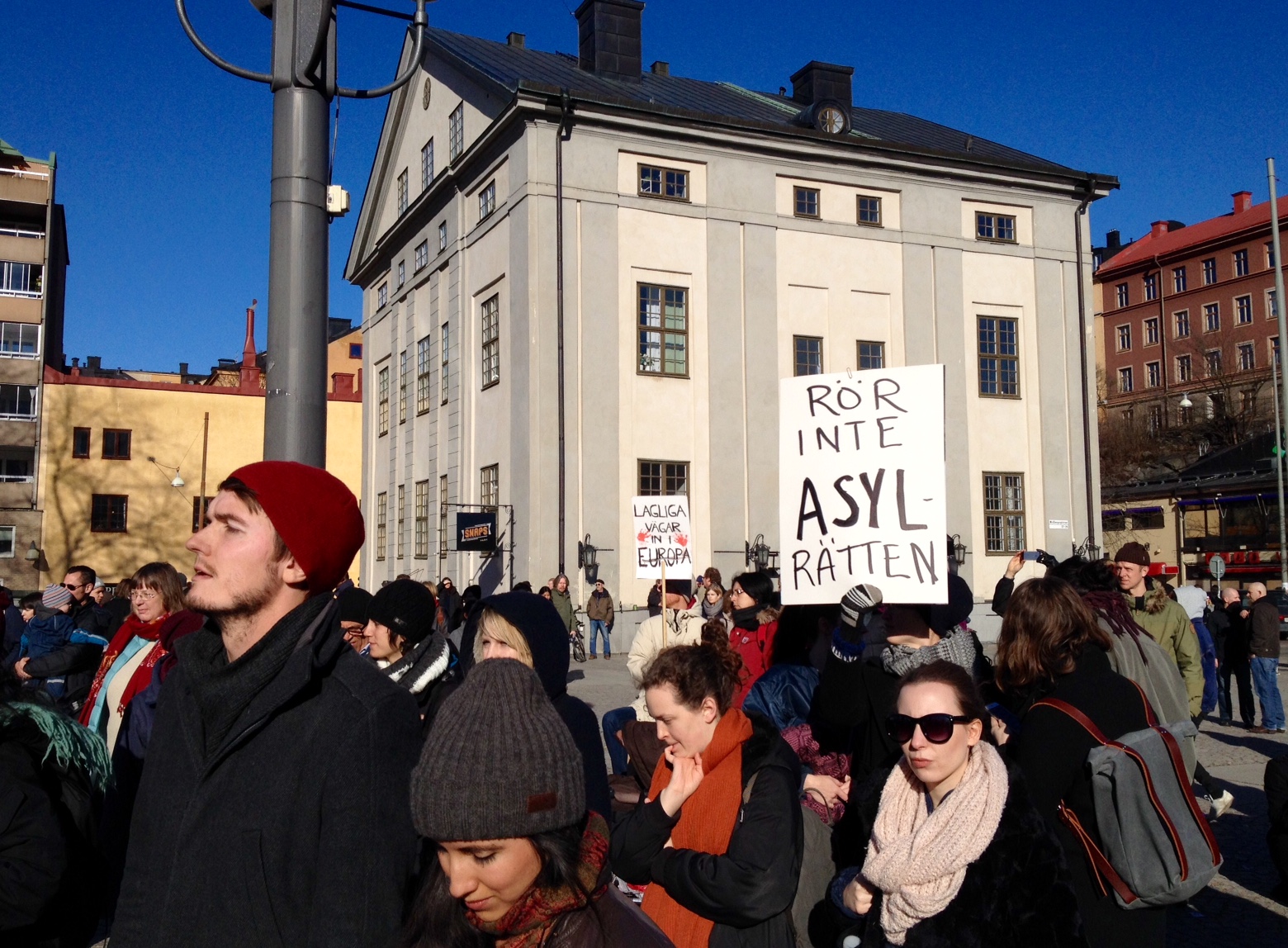Hon är en av hundratals människor som demonstrerade mot regeringens politik i Malmö, Göteborg, Uppsala och Stockholm, i lördags. Folkkampanjen för asylrätt, som var en av arrangörerna, består av olika civilsamhällesorganisationer som arbetar med mottagande och hjälp till flyktingar. Förutom att demonstrera har de hittills samlat in över 24 000 namnunderskrifter mot regeringens lagförslag. Målet är 100 000 namnunderskrifter som ska lämnas över till riksdagens talman den 20 april.