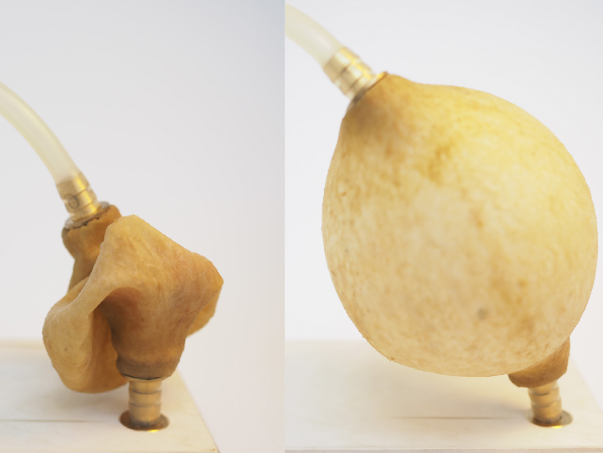 Harvey Bewleys verk är betydligt märkligare. Han har skapat något som för tankarna till spelkonsolen i filmen Existenz av David Cronenberg. Hudfärgad latex i olika former blåses upp av en liten motor. Materialet både ser ut och känns obehagligt organiskt. Verket kan ses som en reflektion kring modern robotforskning, där man arbetar mycket med att skapa artificiella former och uttryck som berör, väcker känslor hos människor.
