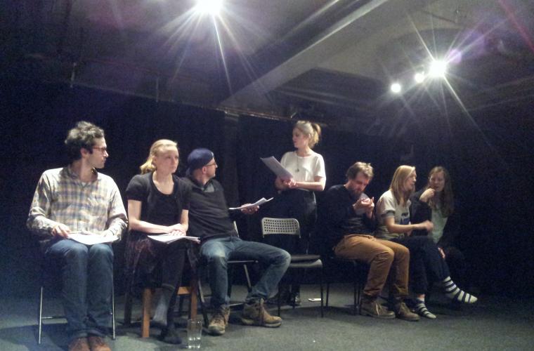 Teater Tillsammans är en fri teatergrupp som bildades 2010 av svenska och tyska teatermänniskor. Konceptet är modern tysk dramatik och exempel på tidigare produktioner är Woyzeck av Büchner och Katzelmacher av Fassbinder. Förra året spelade man Djurens rike av Roland Schimmelpfennig och nu är det åter dags för en ny uppsättning. Den 7 juni är det premiär för pjäsen Folkmord eller Min lever är meningslös skriven av den österrikiske dramatikern Werner Schwab.