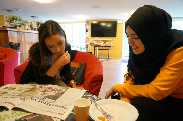 • Nisrin Himdi och Merve Cesmeli diskuterar en tidningsartikel om att många inte känner igen sig i Sverige.