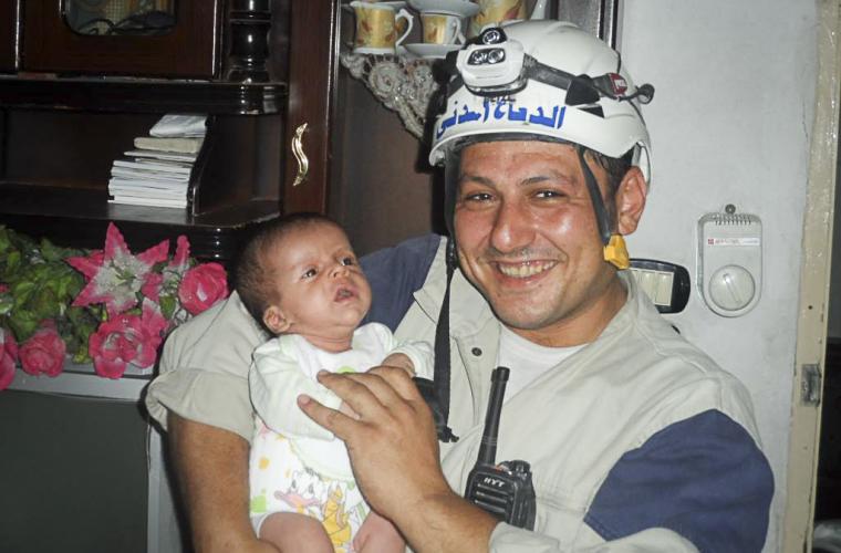 Khaled Omar Harrah blev en symbol för de syriska frivilligkrafterna när han i juni 2014 var med och räddade ett spädbarn som mirakulöst överlevt under rasmassorna av ett sönderbombat hus i Aleppo. Han arbetade i 14 timmar med att gräva vid den utbombade lägenhetsbyggnaden och hjälpaktionen blev särskilt uppmärksammad eftersom den fångades på film och lades upp på Youtube.