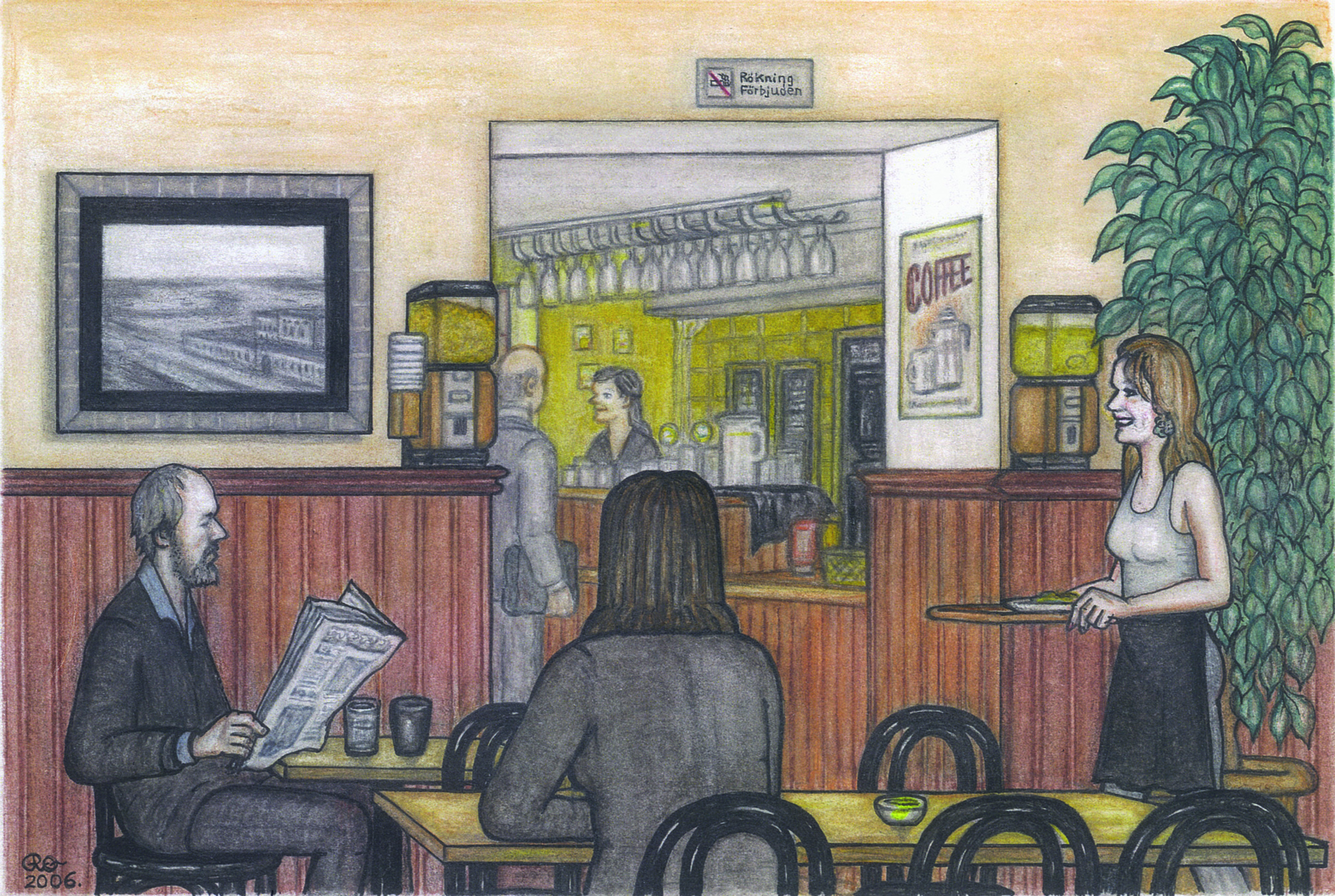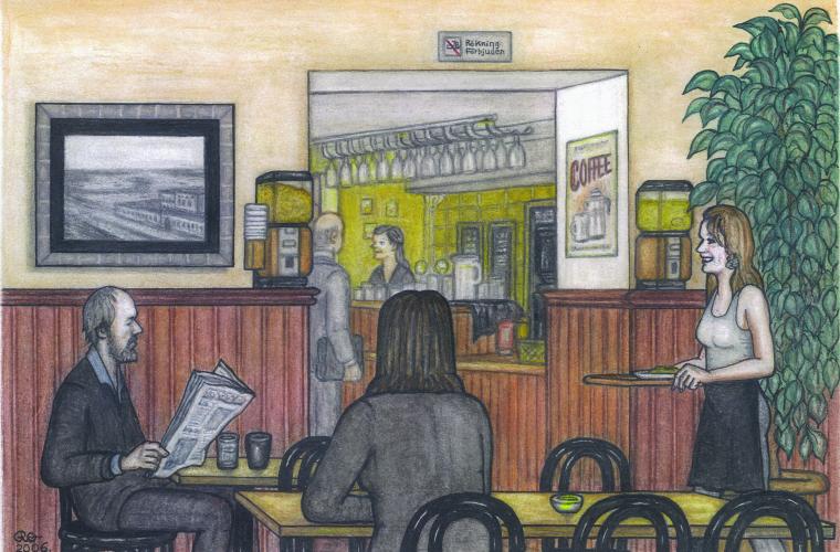Sedan flera år tillbaka har Bertil Henry tecknat av kaféer runtom i Göteborg. Alltifrån flashiga konditorier med stora sortiment till enkla arbetarkaféer. I nyutkomna boken På kaféerna i Göteborg samlar han sina kaféteckningar.