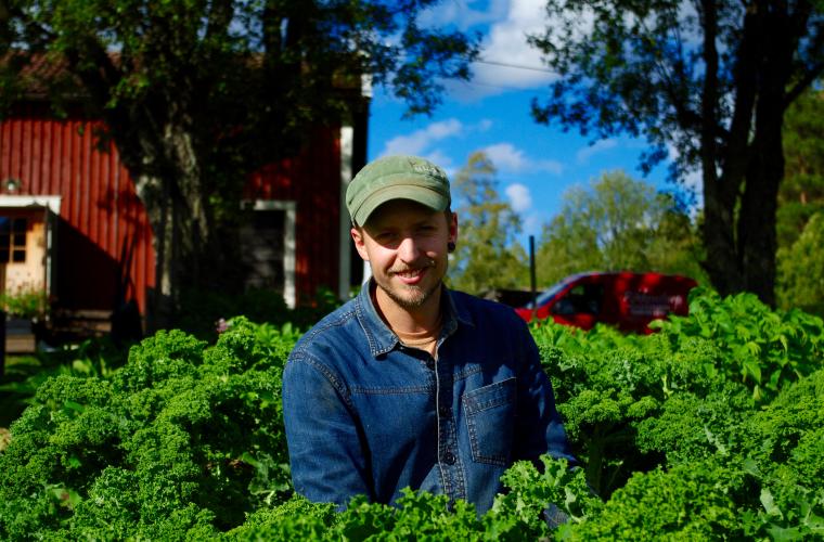– Vi har 35 personer som får grönsaker från vår odling, säger Joel Holmdahl.