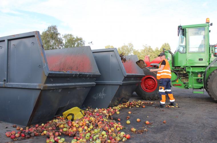 Flera tusen ton äpplen ruttnar bort i svenska trädgårdar varje år. Men allt fler kommuner samlar in fallfrukt för att använda som biogas. Vi har besökt en återvinningscentral i Stockholm där containrarna snabbt fylls med nya äpplen.