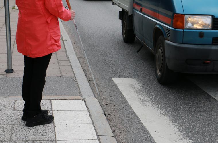 Men även trafiken är problem. För några år sedan kom en uppmaning att hålla ögonkontakt med bilförare och andra trafikanter. För några av oss är detta självklart lite problematiskt. När jag går över gatan fungerar det inte att få ögonkontakt med den som kör bil, cyklar eller kör MC. Jag måste kunna lita på att andra i trafiken ser den vita käppen och att de stannar när de ser att jag ger tecken för att gå över gatan. Jag slår ut med min käpp, tutar eller klingar det inte, går jag över. Men du som ser mig, tänk på att vind och regn nästan överröstar trafikljudet och var extra uppmärksam. Detta blir mer och mer viktigt i takt med att fordonen blir allt tystare. Du som cyklar och passar på att genomföra dagens träningspass, du hörs nästan inte alls när du kommer susande.