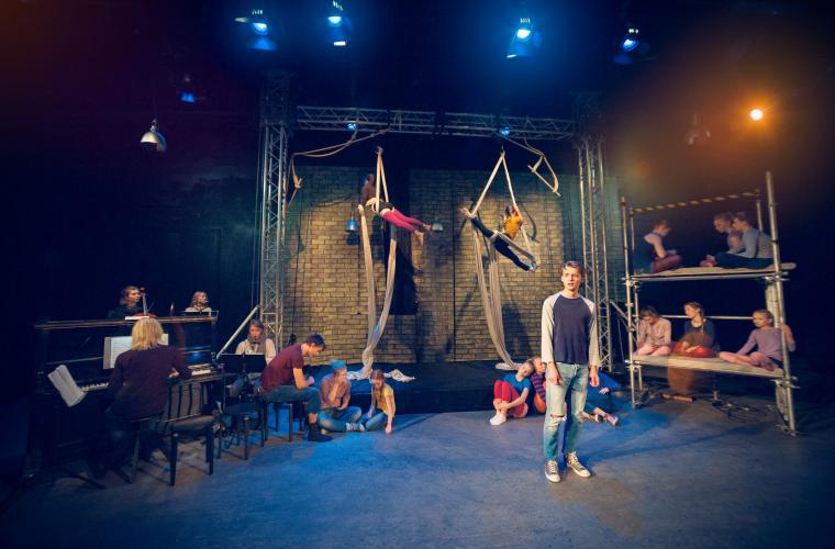 Teater, cirkus och musik. Allt ryms i Rapport för sjöfarande, en föreställning som utgår från möten med flyktingar.
