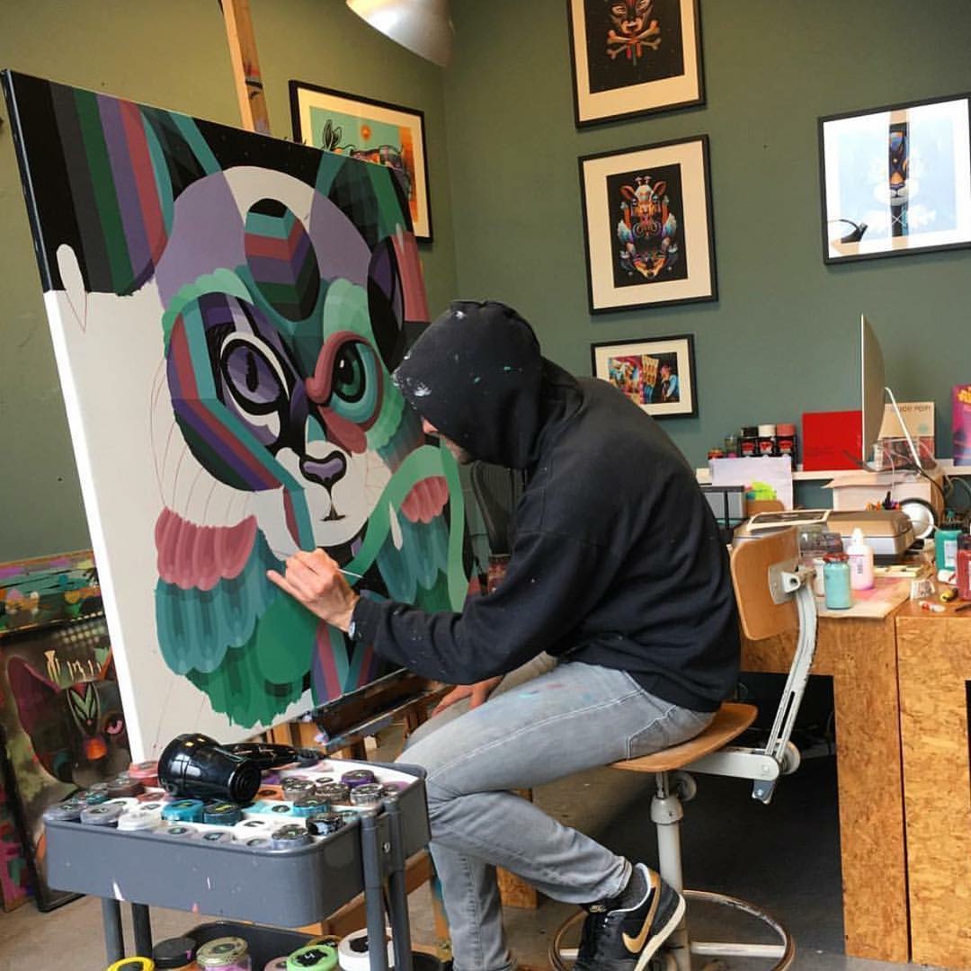– Bland de svenska är Olive -87 högst upp på listan, som var den som sålde mest på vår stora utställning i Hallonbergen förra året. En annan är Hellström street art som har börjat bli väldigt uppskattad den senaste tiden. Själv är jag jättestolt över Insane -57, en internationell konstnär som både jag och många andra precis har upptäckt och som verkligen är på gång. Vi vill vara uppdaterade med det som är på gång just nu, men visar också mer etablerade namn som Weik, Elcoo Virus, Klaas Lageweg, Zmogk och Ziggy.