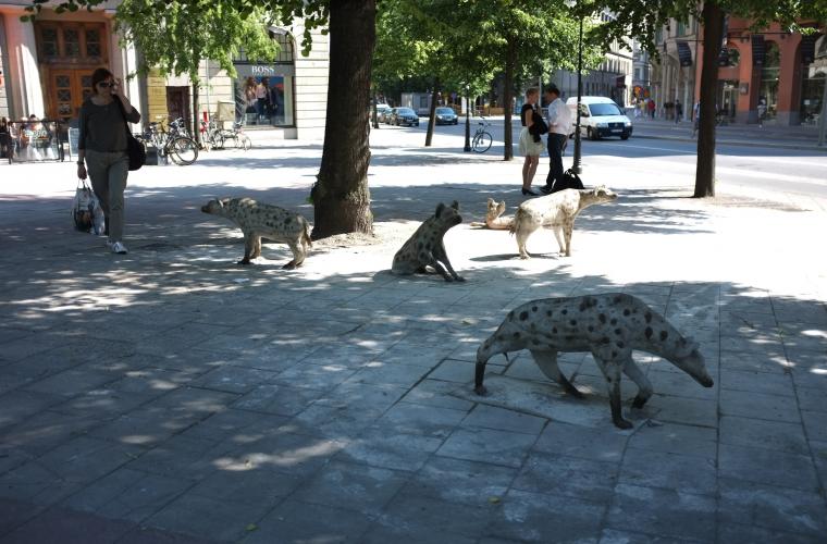 – Hyenorna vid Stureplan, Sveriges i särklass bäst genomförda gatukonstverk, som har fått nya ägare efter att Trafikkontoret plockade bort dem 2011. De har sökt upp Wallery och vill ställa ut just hos oss och absolut ingen annanstans, så det är en klapp på axeln till mig som gallerist!