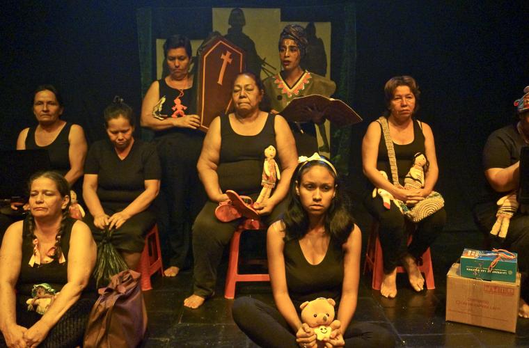 Det är tidig kväll, strålkastarna tänds och ett tiotal kvinnor ur teatergruppen Mujeres Elefantes (elefantkvinnorna), ifrån den konfliktdrabbade regionen Santander i Colombia, kliver in på scenen. ”Jag trodde det var en lek”, säger en yngre kvinna. ”Jag förlorade min son!”, utropar en äldre. Kvinnorna vill berätta sin historia, en historia om att tvingas lämna sina hem på grund av krig och leva på flykt i sitt eget land.
