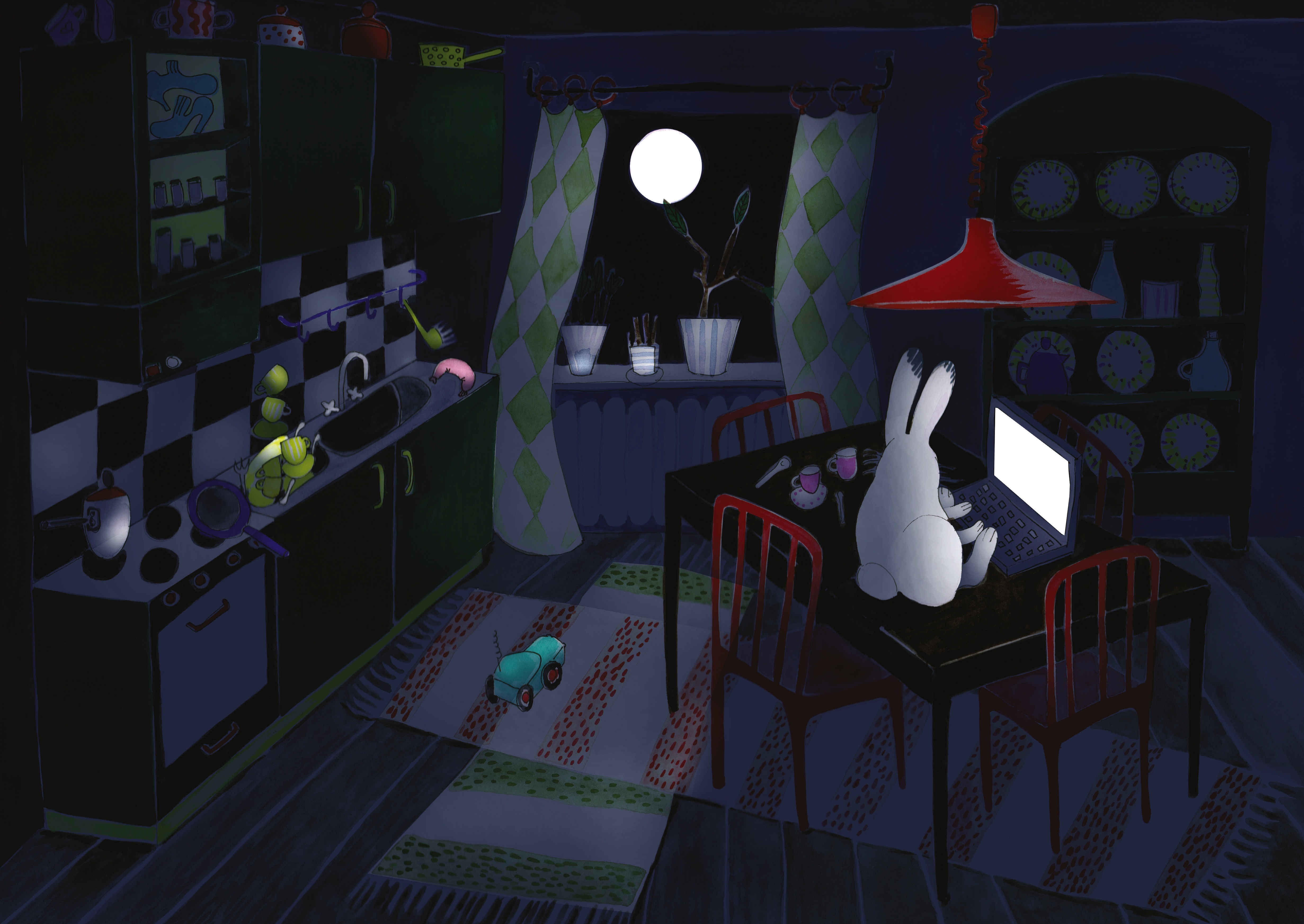 I mörkret får Kanin en ljus idé, varför inte bjuda in till ett jättekalas som kan få honom på bättre humör.