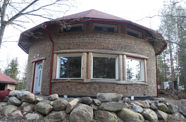 Stolpvirkeshuset har upp till en halv meter tjock cellulosaisolering, från gamla tidningar. Det verkar vara ett radikalt exempel på självbygge till en liten kostnad. Huslånet är på 40 000 euro – men det räckte till båda husen, med hjälp av lönen som byggnadsingenjör.