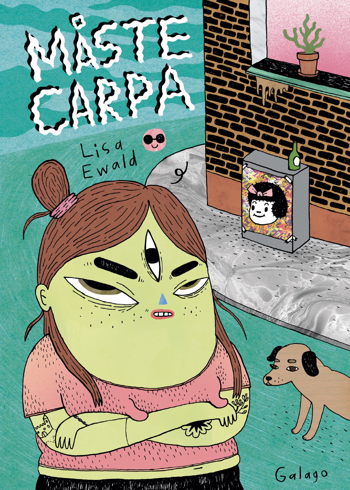 Att läsa Lisa Ewalds nya bok är som att kliva in i hennes huvud. Det är knappt så Måste Carpa ens kan kallas för serieroman, det är inte en roman i ordets rätta bemärkelse. Istället är det en samling färgglada bilder, kortare serier och ensidingar som ger en inblick i skaparens skruvade fantasi. Eller vad som vid första anblick kan verka skruvat.