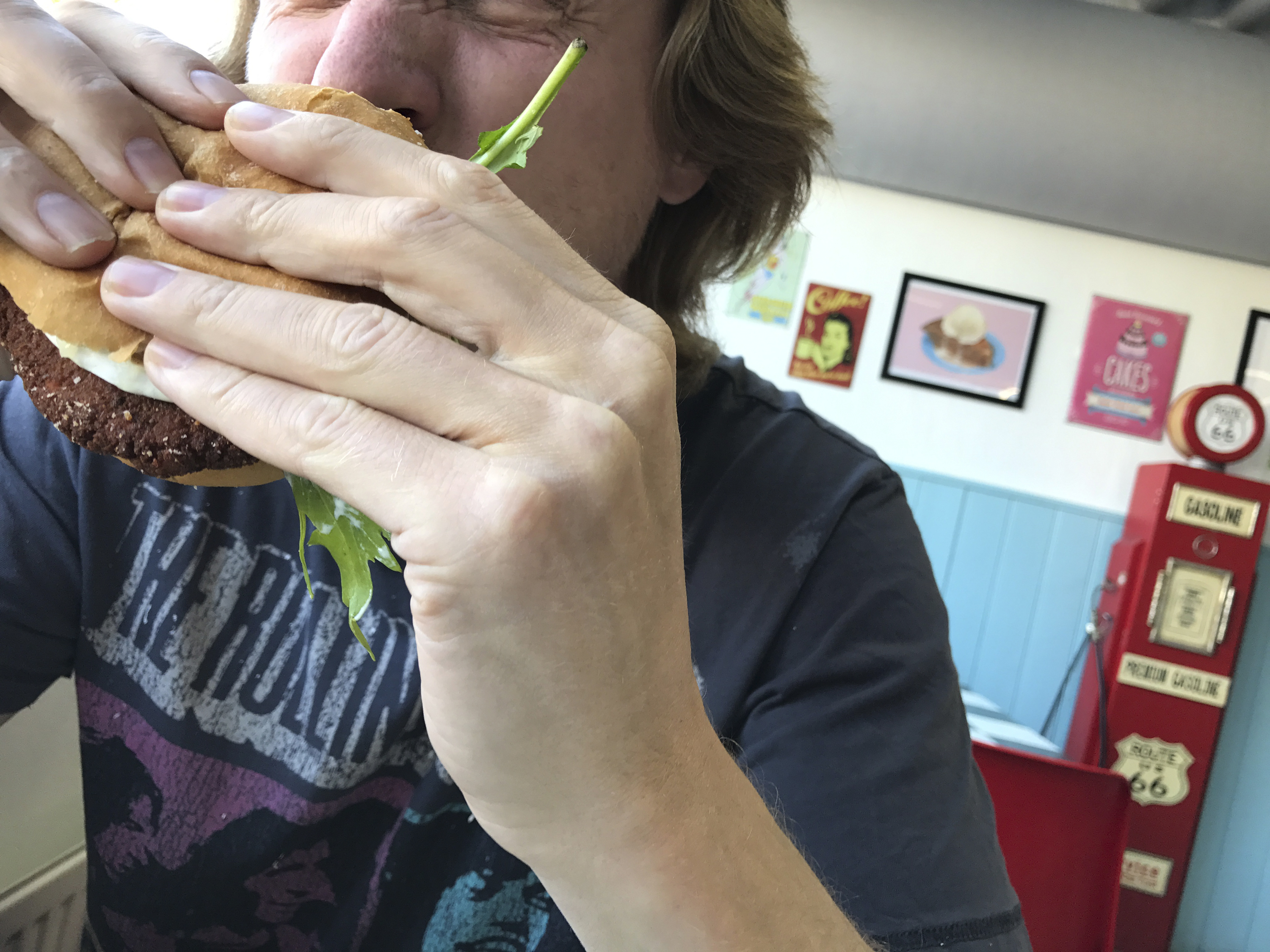 Varma sommardagar är det trevligt att... Nej, just det. Men värmen kommer säkert i september och en rejäl burgare passar lika bra då. För rejält blir det med foodtrucken Vegan soul train, det hörs ju på sojaburgarens namn också: Mike Tyson.