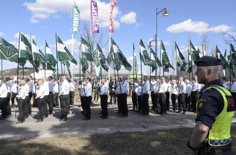 – Det kan handla om uniform klädsel eller klädsel av visst snitt och färg, vissa attribut eller emblem och om uniformt uppträdande som att till exempel taktfast marschera med fanor och sköldar. Det finns utrymme att väga in olika faktorer till en samlad bedömning, även om de var för sig i lagens mening inte hade ansetts sprida ett meddelande av ett givet slag, menar han.