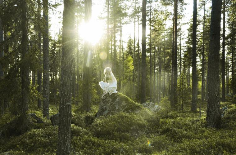 Det är gryning och en tunn vit dimma ligger över den spegelblanka tjärnen. Jonna Jinton sätter huttrande på sig en vit, fladdrande klänning och kliver barfota på de daggvåta grästuvorna. Hon ställer sig vid vattenbrynet med ryggen mot kameran som står riggad på ett stativ några meter bort. Klicken från fjärrutlösaren är det enda ljud som hörs genom skogen.