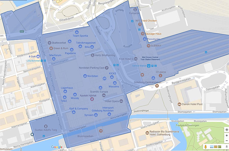 De områden förbudet gäller är Nordstan, centralstationen, Brunnsparken, Kanaltorget, Gustaf Adolfs torg, Nils Ericssonsterminalen och runt resecentrum. Centrala delar där det rör sig mycket folk, vilket är ett av moderaternas huvudargument.