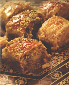 Några ord om ingredienserna: Apelsinblomsvatten kan köpas i orientaliska matbutiker. Apelsinblomsvatten är en vanlig smaksättare i desserter och sötsaker från hela Mellanöstern.