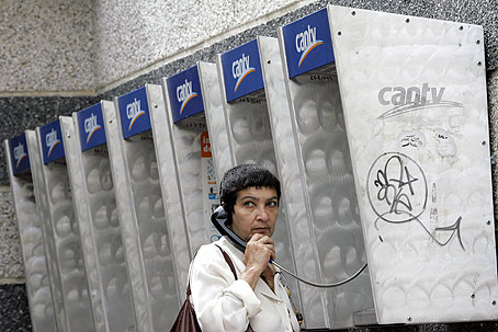 • Venezuelanskan Arelis Zaidman använder en av Telefoniföretaget CANTV:s telefoner i Caracas den 9 januari. I förra veckan meddelade president Hugo Chávez att CANTV, samt företag i olje- och elsektorn nu ska förstatligas.