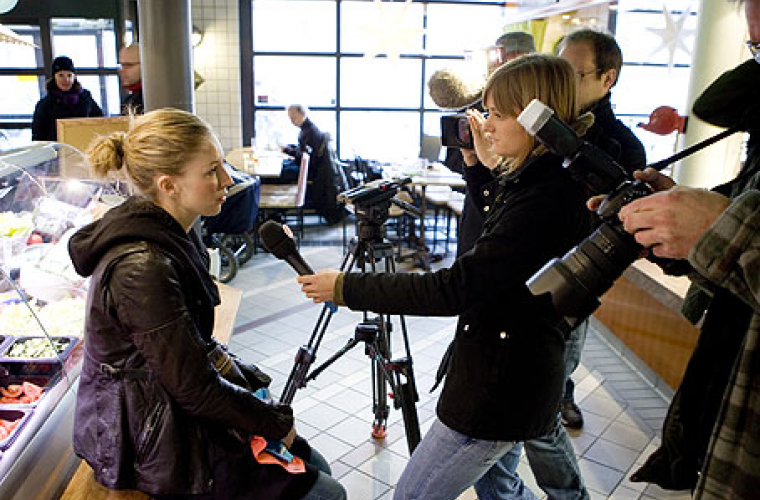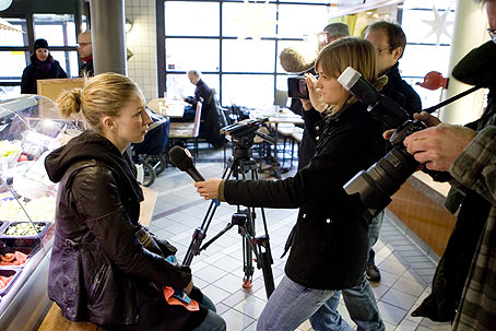 6 december. Ungmoderater samlas utanför salladsbaren för att stödja ägarna