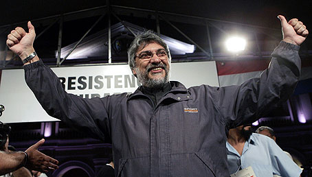 Fernando Lugo blev känd när han ledde en demonstration mot president Nicanor Duarte förra året. Presidenten ville ändra grundlagen för att få mer makt. Men det blev stora demonstrationer mot honom. Han kunde inte ändra lagen.Under resten av året ledde Lugo la concertación, en organisation som samlar olika folkrörelser och den politiska oppositionen. Kyrkans ledare bad Lugo att sluta arbeta politiskt. President Duarte sa att präster inte får ställa upp i val enligt grundlagen. Lugo valde mellan politiken och kyrkan. Han valde politiken.