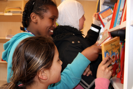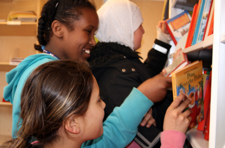 Saida Ahmed, 10, lånar ofta böcker på bokbussen, och tycker att det är bra att det nu finns på hennes hemspråk somaliska också.