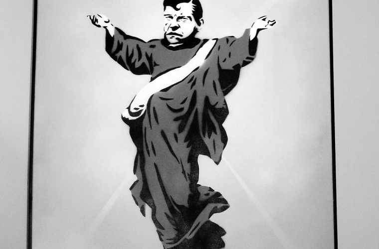Centralt motiv är Christer Pettersson, kanske falskeligen anklagad för mordet på Olof Palme. Pettersson är en antihjälte som stod längst ner i samhällshierarkin och bilden av honom som odåga är etablerad hos de flesta. Men Hop Louie skriver om sagan om Pettersson. På en tavla står han Jesuslik, det strålar ljus från honom. Upprättelse.