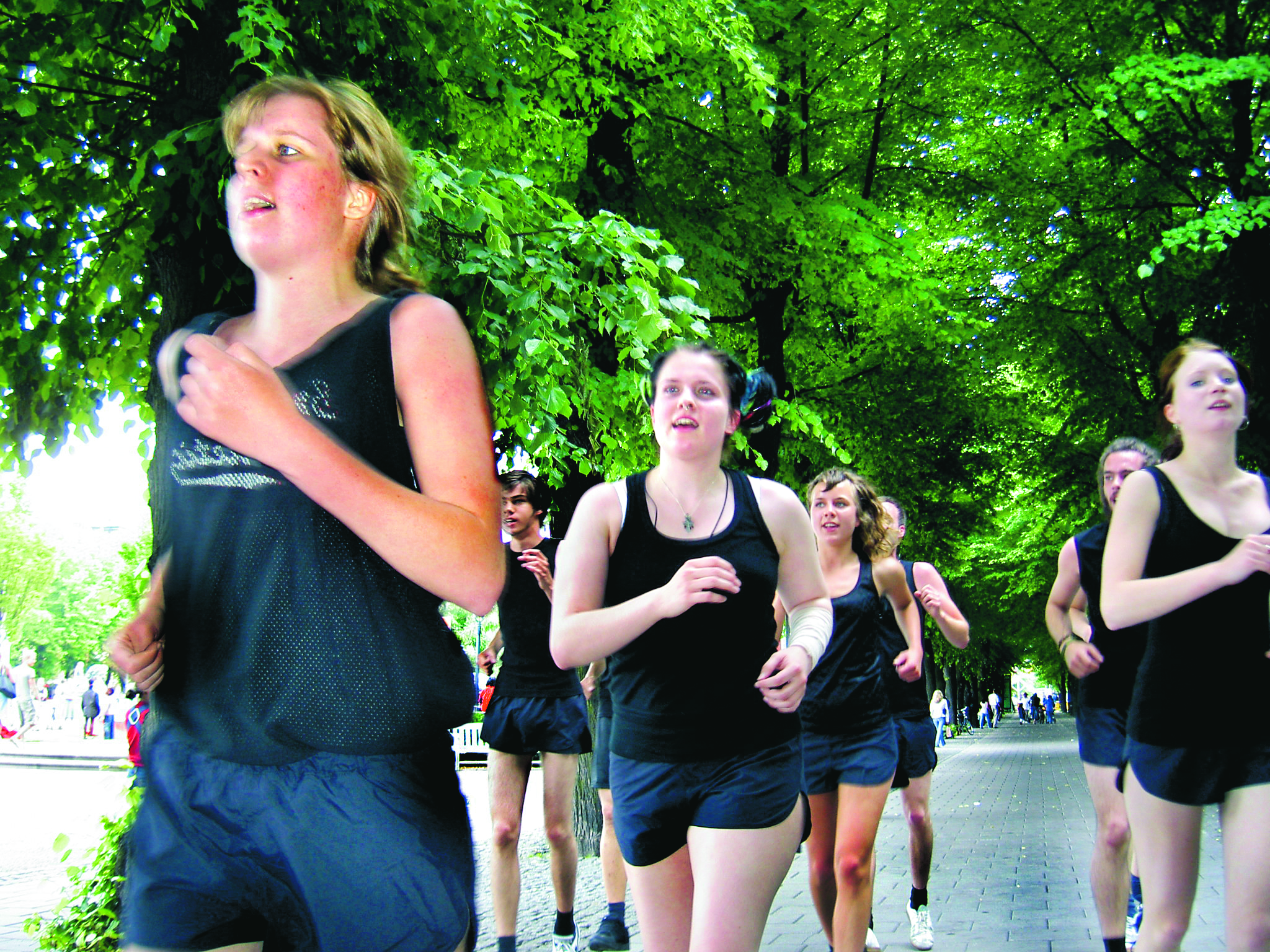Samtidigt som den olympiska elden passerade Stockholm gjorde en grupp fristående aktivister en aktion i Kungsträdgården. I likadana svarta sportkläder och med stela ansikten protesterade de mot att de kläder som används och marknadsförs under OS tillverkas under dåliga arbetsförhållanden.