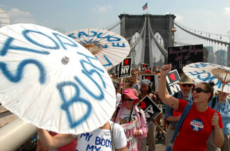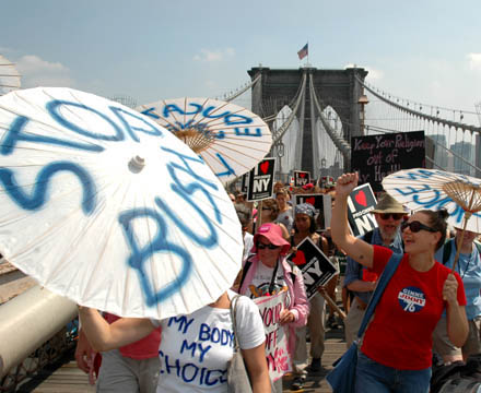 Protester mot republikanernas partikonvent har pågått under hela veckan. Republikanska delegater från hela USA samlades i New York för att utnämna George W Bush till sin kandidat i presidentvalet i november.