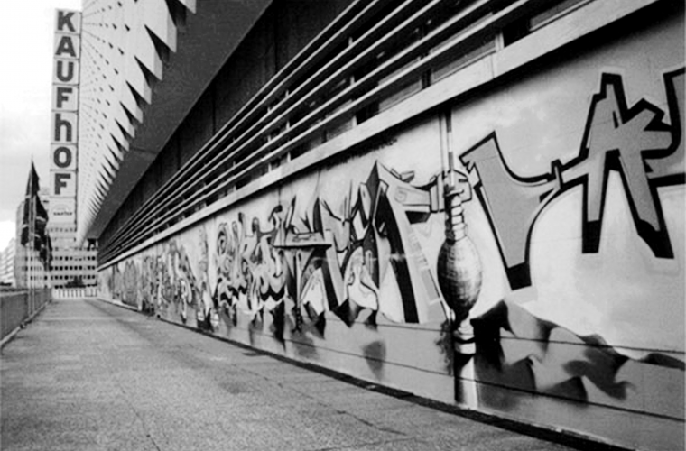 På vissa vykort i turistbutikerna kan man se Berlinmuren fullständigt överöst med målningar av alla slag. Berlin har varit en sorts revolutionärernas och gräsrotsrörelsernas Mekka. Och graffitin har sakta men säkert blivit en del av en proteströrelse. En uttrycksform för människor utan pengar, utan tryckpressar att pumpa ut reklamaffischer med. De som vägras tillträde till busskurernas inglasade reklamplatser eller konstgallerierna. Under en av de större tunnlarna vid Friedrichstrasse finns ett exempel på sprejburksreklam utanför de klassiska ramarna och utan logga, utan signatur och postgirokonto: 'Terrorismus ist nicht mit Bomben bekämpfbar' står skrivet i slitet gråbrunt. Protest eller inte. Det går nog åt några miljoner för sanering av - enligt ägarna - förstörd privat egendom och det är nog vid mer än en affärsmiddag som man tagit upp den här 'kladdproblematiken'.