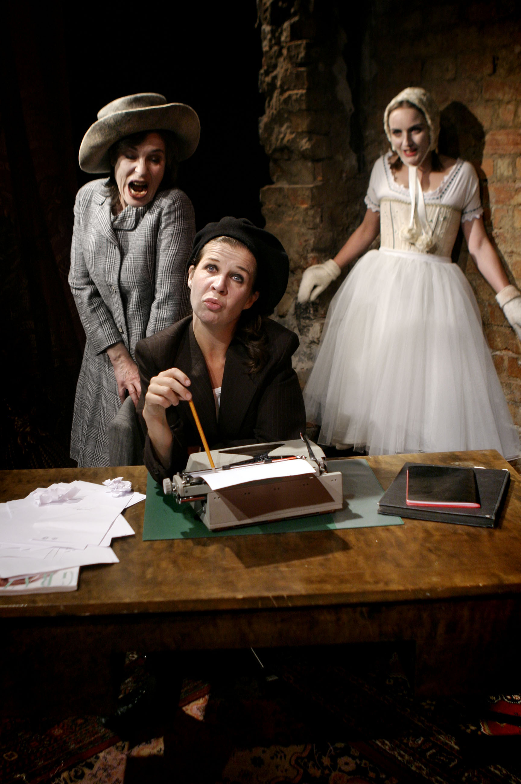 Jelinek dekonstruerar kvinnligheten genom ett collage av kvinnoikoner som Jackie Kennedy, Marilyn Monroe och Sylvia Plath och sagoprinsessorna Snövit och Törnrosa. Kvinnorna är alla döda, med undantag av författarinnan Elfriede Jelinek, som i Günthers version har blivit en rollfigur. Jelineks alter ego upptas av sitt tvivel, sin bristande tillit till skrivandet. De kvinnliga arketyperna är en del av henne själv. De är roller som hon går in och ut i och som hon ständigt brottas och bråkas med. De protesterar ibland, vill få ledigt, frågar om de kan gå. De förvirrar henne och ironiserar över hennes skrivande. De ifrågasätter hennes förmåga och kvinnlighet. Det imaginära och det reella smälter samman och byter plats. Texten blir en dialog med sig själv och blandar myter och sagogestalter med högst påtagliga samtida företeelser som till exempel schlagerfestivalen.