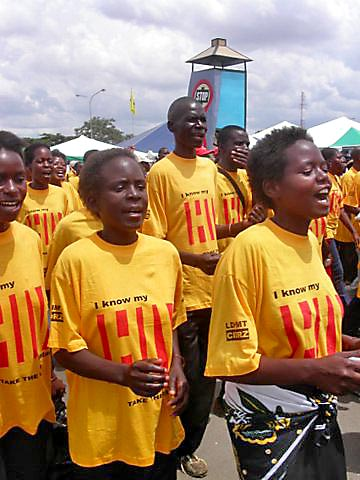 Jubel utbröt i folkmassan när ett gäng stadiga äldre kvinnor dansade så att brädorna gungade på den provisoriska scenen. World AIDS Day 2004 hade samlat hundratals aktivister på parkeringen framför Lusakas nyaste shoppingcenter. Årets tema var kvinnors och flickors utsatthet för hiv/aids, vilket märktes på banderoller och tröjor med budskapen 'Protect our women and girls', och 'Speak up sister for your rights'.