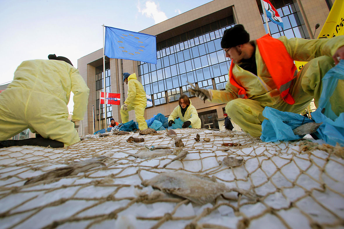 Greenpeace överlämnade i går ett ton döda havsorganismer till EUs miljöministrar. Med 'gåvan' vill organisationen uppmana miljöministrarna att arbeta fram en plan för att säkra havsmiljöerna.