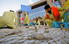 Döda havsorganismer protest mot EUs fiskeripolitik