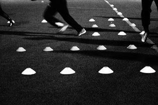 I början på säsongen är det olika passningsövningar som gäller. Nye tränaren Martin Pringle instruerar. Ta emot bollen, slå tillbaka, gör en liten löpning, ta emot och lämna ifrån sig den igen.