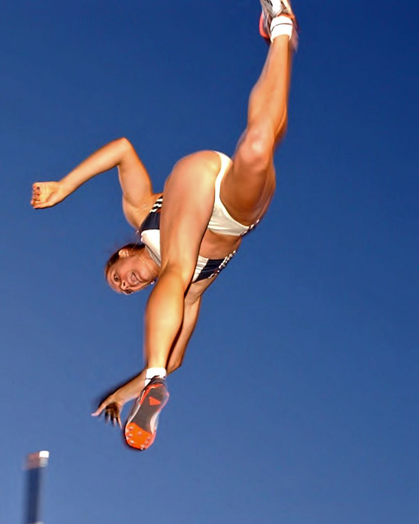 Jelena Isinbajeva är inte någon jätte, är 1.74 lång och väger 65 kilo. Dock är hon en mycket mer kraftfull hoppare än sin landsmaninna och svåra konkurrent Svetlana Feofanova. Isinbajeva började som gymnast men gick i fjortonårsåldern över till den då ganska nya sporten kvinnlig stavhopp. I början var förebilden den mångfaldige världsrekordmannen från 1980 och 1990-talen, Sergej Bubka: