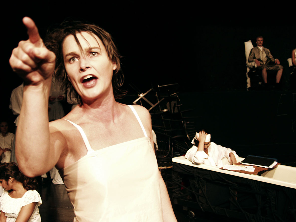 Och det ligger någonting i vad han säger. Det är ingen liten eka, snarare en fullriggare, den unga ensemblen sjösatt i Kärrtorp. Mordet på Marat är metateater, en pjäs om ett teaterstycke som spelas upp av patienterna på ett mentalsjukhus i Frankrike cirka tjugo år efter den franska revolutionen.