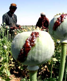 • Det är här det börjar - det som kan sluta med en överdos i Stockholm. Afghanska bönder snittar vallmo för att samla in råopium.