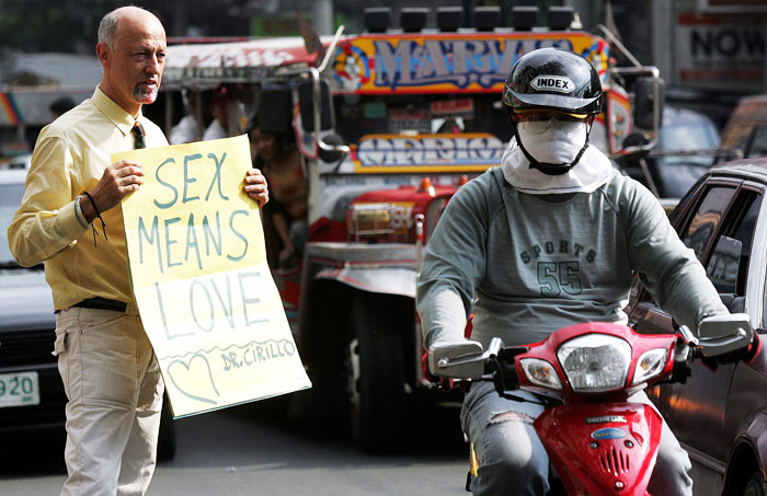 Katolska kyrkan anser att kondomer leder till promiskuitet och äktenskapsbrott. I de katolska skolorna i Filippinerna talar man därför bara om så kallade naturliga familjeplaneringsmetoder, som avhållsamhet eller avbrutna samlag.