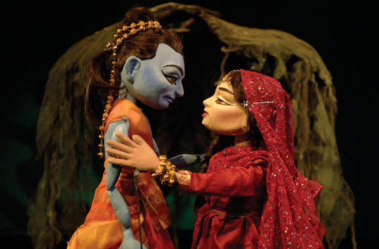 Tjugofyra fantasieggande och individuellt skurna stavdockor medverkar med en imponerande rörlighet; läpparna rör sig när de agerar och dansar, en av dockorna vickar till och med på höfterna. Dockmusikerna som föreställer indiska zigenare trummar, spelar fiol och flöjt på sina små instrument så vackert och illusoriskt att man häpnar.