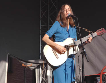 Tonerna som kommer ur hennes mun påminner ibland om vibrationerna av en såg. Under den gassande solen känns hon som en sagofigur, en drömsk varelse som lyser på scenen och ger ljud ifrån sig, vackert ljud, galet vackert, som inledningen till Gökboet.