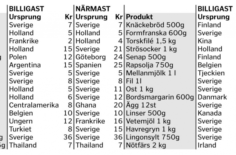 Vår undersökning visar också att den billigaste maten i stor utsträckning är tillverkad utanför Sverige. Det gäller till exempel mjölken av märket Euroshopper, som framställs i Tjeckien.