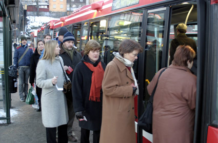 Stockholms kollektivtrafik är på många sätt märklig. Bussar står ofta onödigt lång tid vid hållplatser eftersom alla resenärer ska slussas förbi chauffören. Köer uppstår lätt vid stora stationer. Flera hundra personer köar ibland vid T-Centralen/Åhléns. Funktionshindrade har svårt att ta sig ner till tunnelbanestationerna eftersom personalen som borde hjälpa till sitter i burar. Dessutom är det så att rullstolsburna inte utan hjälp kommer på och av de moderna (!) tunnelbanevagnarna. Detta är både oacceptabelt och onödigt. Köer uppstår eftersom resenärer nu behöver få sina biljetter stämplade av levande människor istället för automater.
