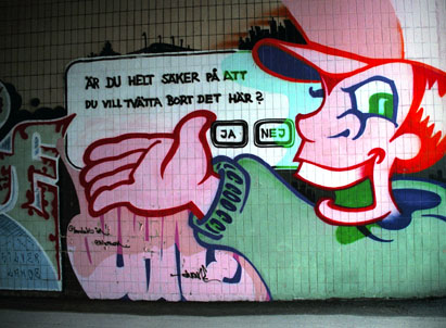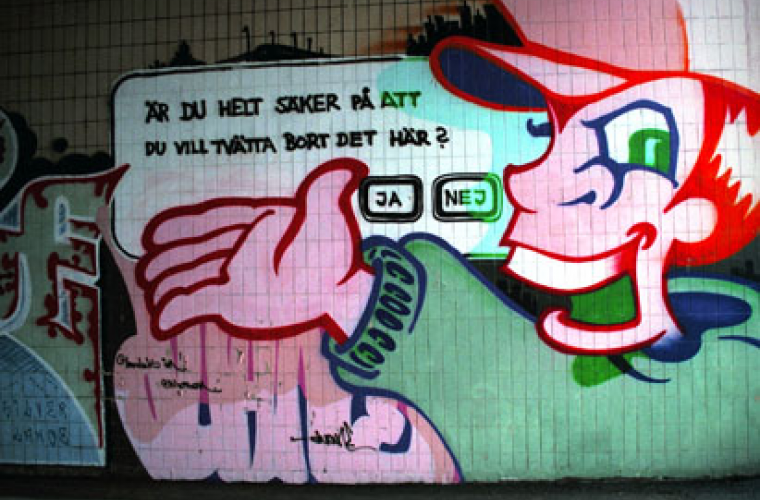 Exemplet Hultman ger rapporten rätt i mångt och mycket. Den före detta säkerhetschefen prövas nu i rätten, men ingen ifrågasätter den diskurs han skapat kring fenomenet graffiti. Under rättegångens första dag fick den åtalade till och med beröm från statsåklagare Nils-Eric Schultz för sin idoga kamp mot det 'klotterproblem' som vi 'alla' plågas av.