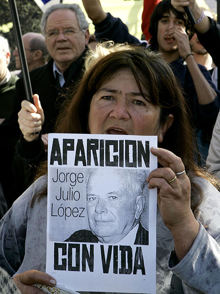 Under två dagar i slutet av december kidnappades 51-årige Luis Gerez. Han hade tidigare vittnat mot poliskommissarien som låtit tortera honom i början av 1970-talet. 77-årige Jorge Julio López har varit försvunnen i över tre månader. Kort före försvinnandet hade han vittnat mot sin torterare Miguel Etchecolatz, en av den senaste militärdiktaturens agenter.