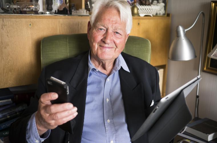 En pensionär som definitivt är modern är Berthel Nordström, 91år. Han äger både en smartphone och en läsplatta. Dessutom har Berthel ett spotifykonto, trådlösa högtalare och älskar QR-koder.