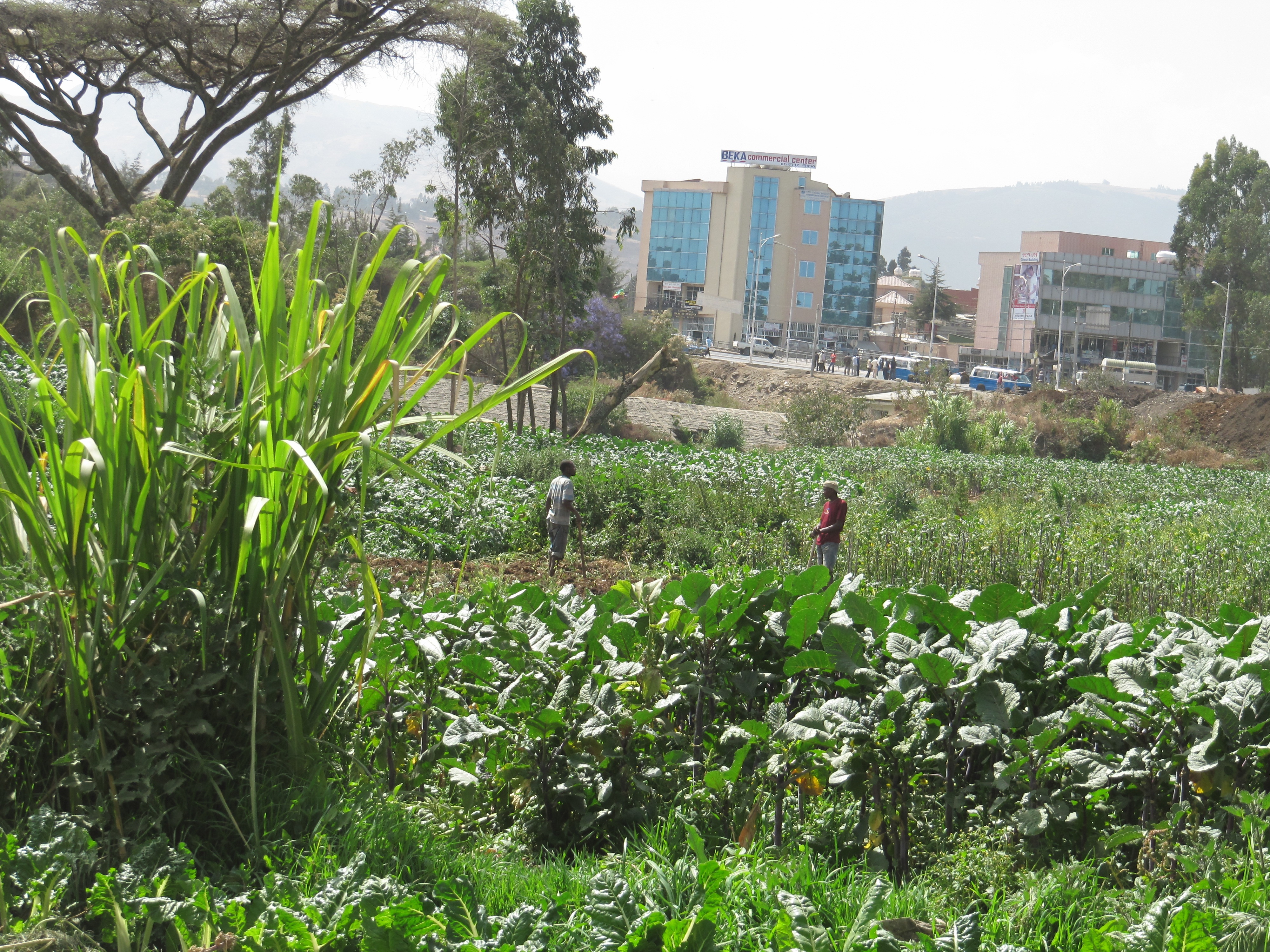 I Etiopiens huvudstad Addis Abeba har matproduktion alltid varit ett inslag i stadsbilden i form av bakgårdsodling av grönsaker och boskap som betar längs vägkanter och på ödetomter. Sedan 70-talet odlar ett antal kooperativ stora mängder grönsaker längs med floderna i staden.